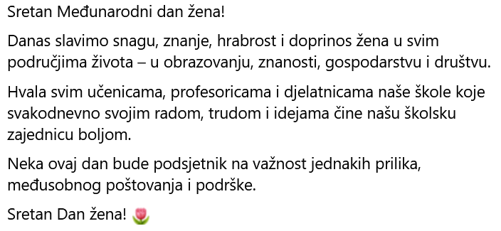 Nakon prezentacije putničkih agencija ABC Travels, BLUE STAR TRAVEL iZEATOURS u svezi izvanučioničke nastave – putovanja u Toscanu za 2.razrede, roditelji su tajnim glasovanjem, s 23 glasa, izabrali putničku agencijuZEATOURS.